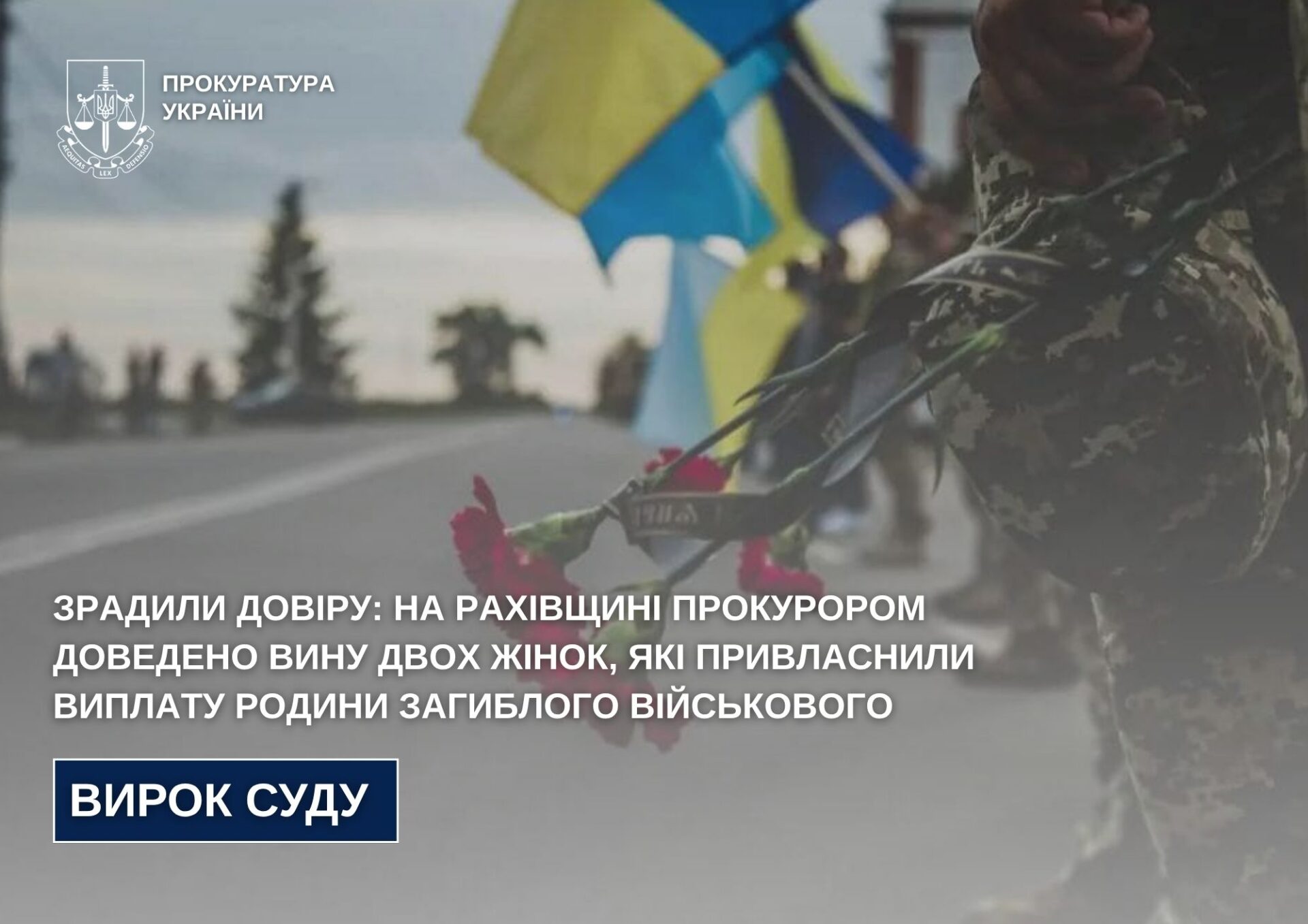 На Закарпатті суд визнав винними двох мешканок Рахівського району, які шахрайським шляхом привласнили грошову допомогу, призначену родині загиблого військовослужбовця.