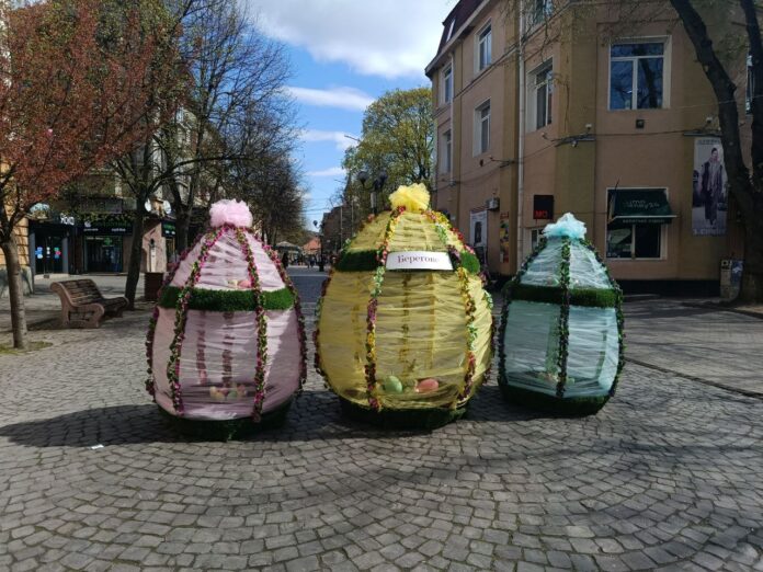 Великодній декор Берегово залишатиметься на вулицях міста протягом наступних трьох тижнів, тож у мешканців та гостей є достатньо часу, щоб насолодитися весняною атмосферою.