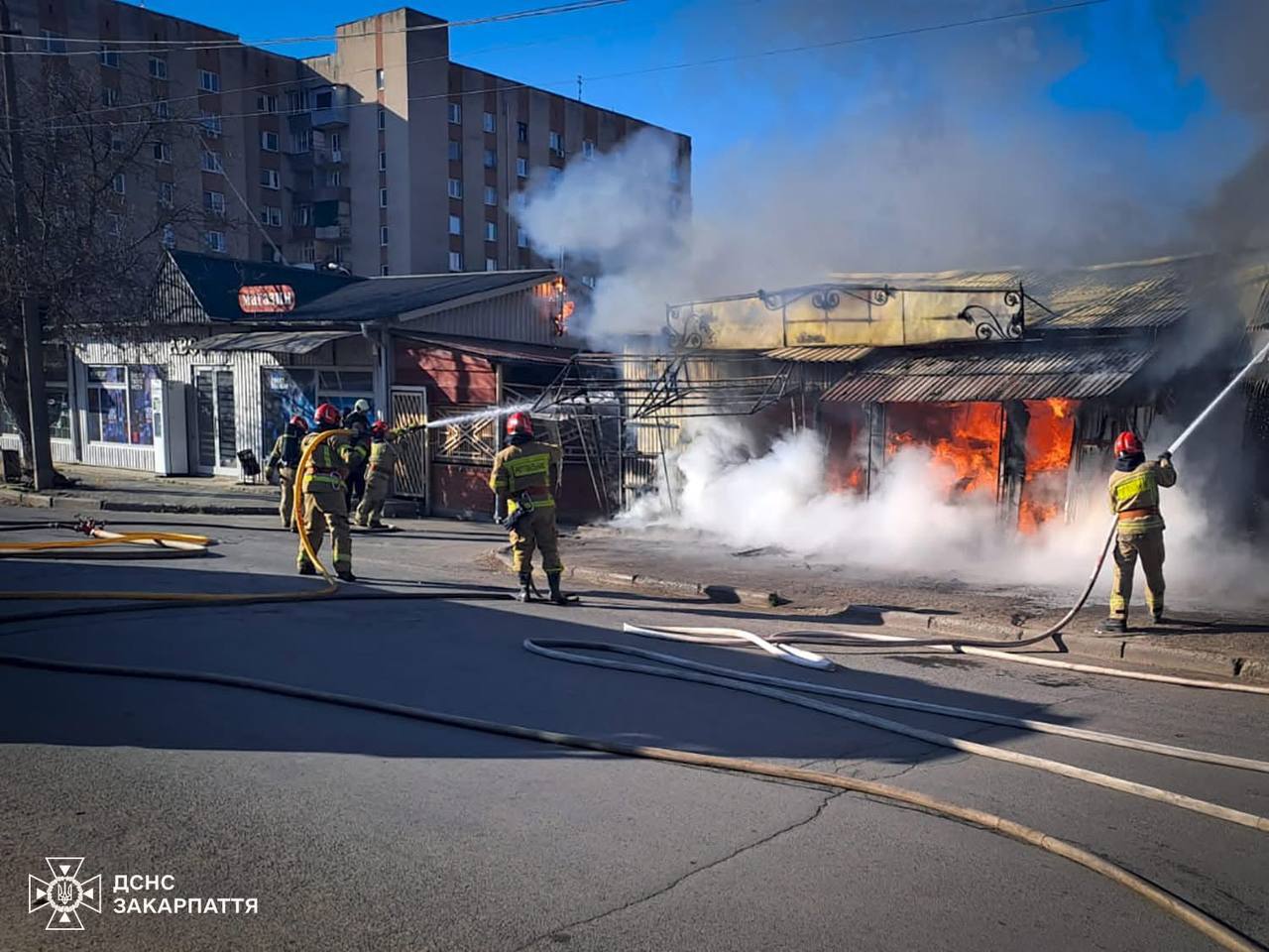 На місце події прибули підрозділи Державної служби з надзвичайних ситуацій (ДСНС) Закарпаття. Вогнеборці працювали у складних умовах через сильне задимлення та високу температуру всередині конструкцій.