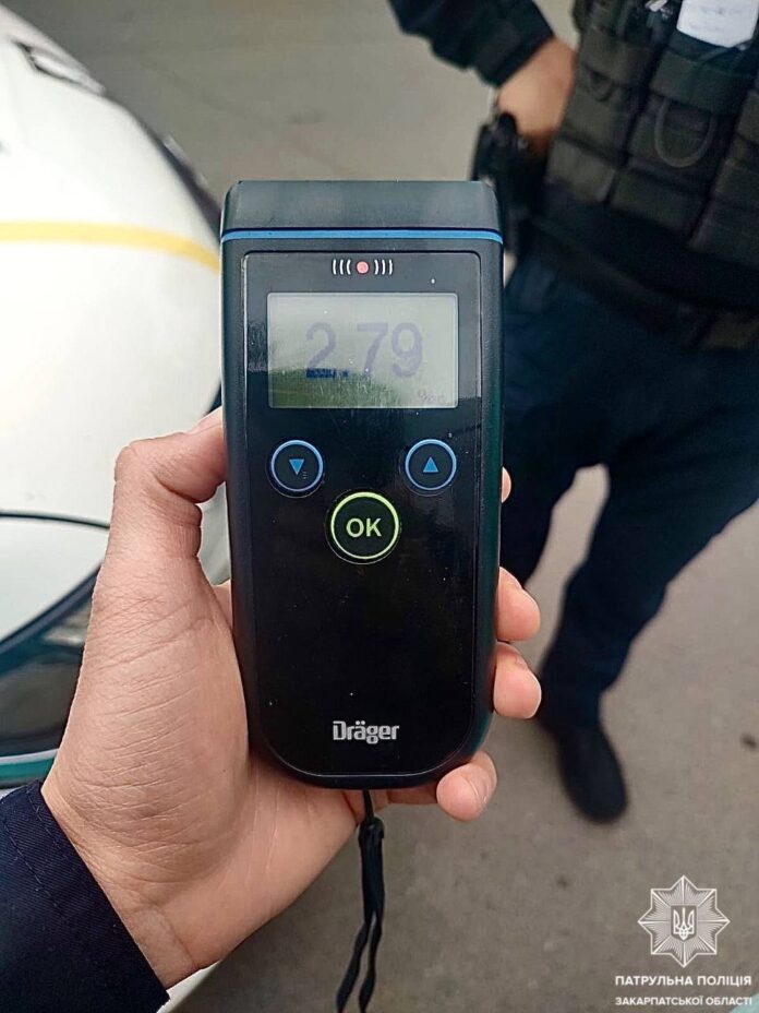 Результат огляду виявився приголомшливим навіть для досвідчених офіцерів — 2,79 проміле. Для розуміння масштабів: