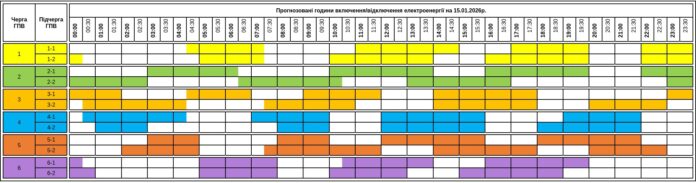Графік відключення світла в Закарпатті на 15 січня 2026 року оприлюднило АТ «Закарпаттяобленерго». Обмеження електропостачання діятимуть для всіх шести черг споживачів протягом доби.