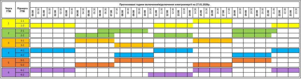 Деталі відключень за чергами на 27.01.2026