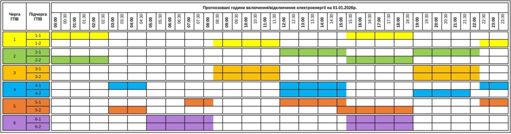 Детальний графік на 1 січня 2026 року