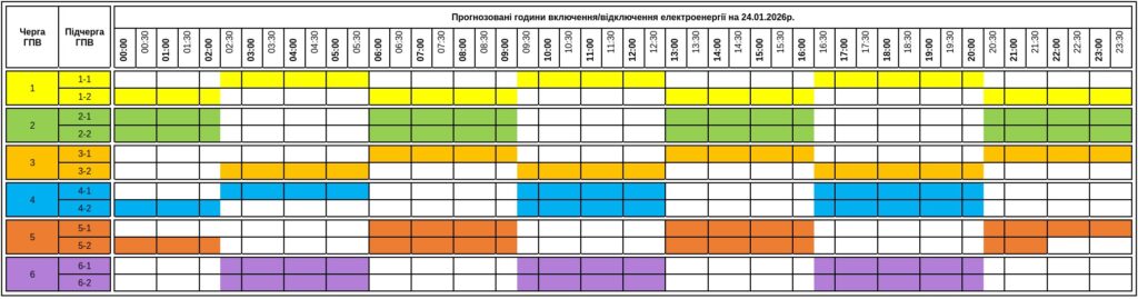 Графіки відключень Україна будуть застосовані в усіх регіонах завтра, 24 січня, через дефіцит потужності в енергосистемі. НЕК «Укренерго» повідомляє про необхідність введення як графіків погодинних відключень (ГПВ), так і графіків обмеження потужності (ГОП) для промисловості.