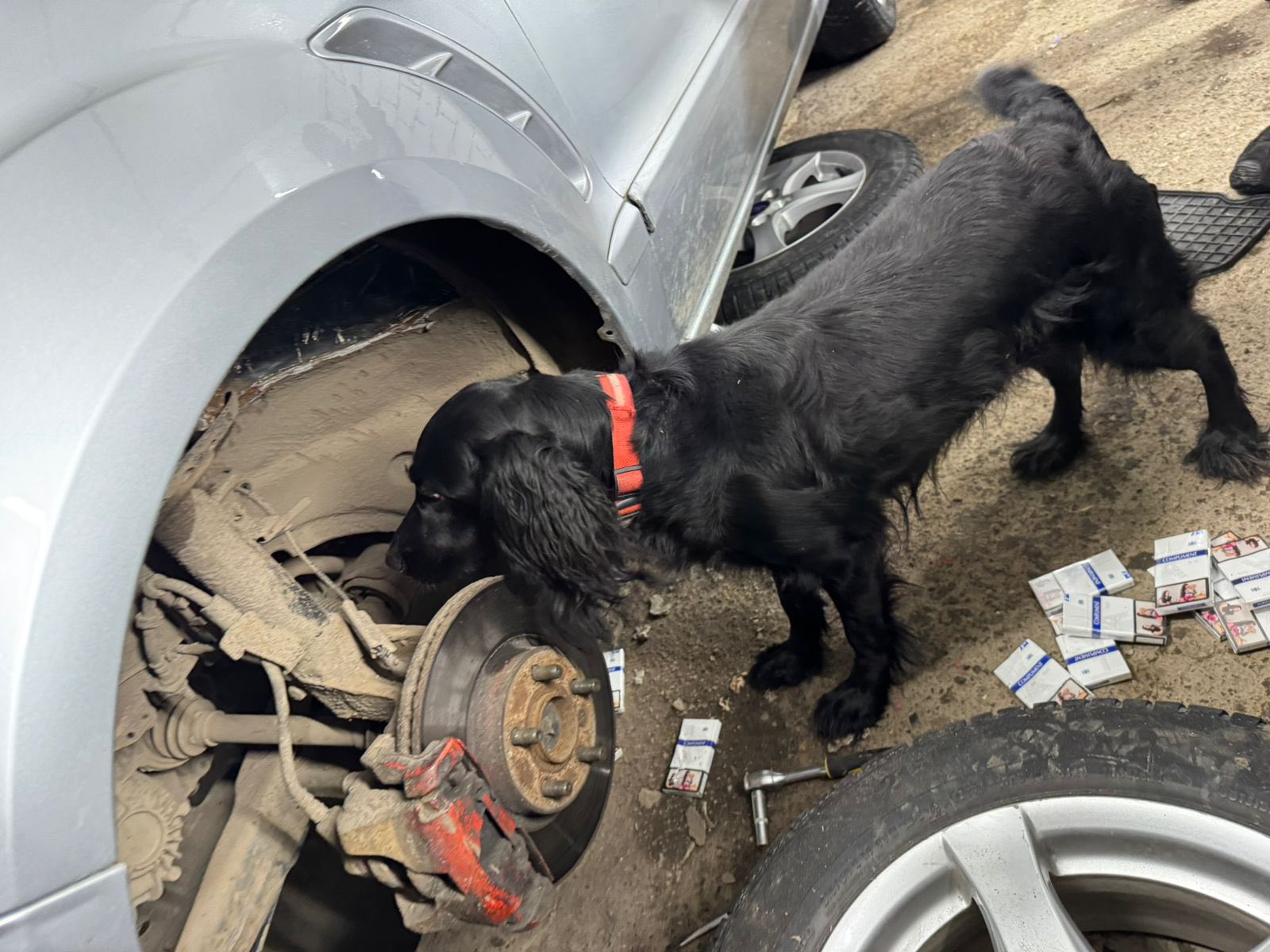 Однак досвідчена кінологічна команда вирішила провести поглиблений огляд. Спанієль на прізвисько Дана за лічені хвилини зреагувала на салон та днище транспортного засобу.