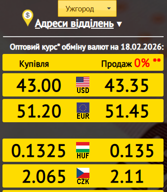 Оптовий курс валют в Ужгороді станом на 18 лютого