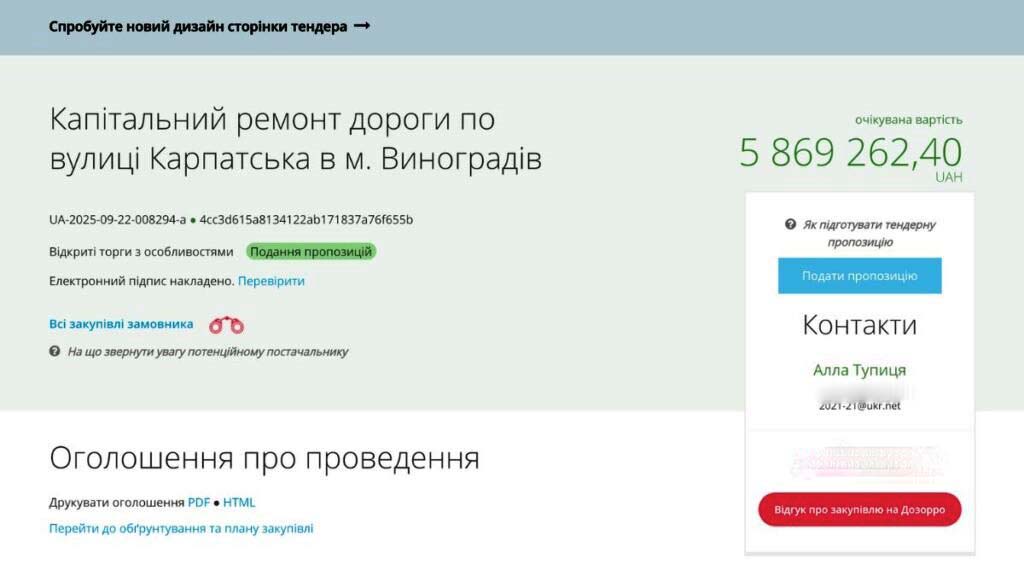 Оголошення такого тендеру — це важливий крок для громади Виноградова. Виділення майже 6 мільйонів гривень на ремонт однієї з вулиць свідчить про пріоритетність питання інфраструктури для міської влади. Тепер громада очікує, що до тендеру долучаться відповідальні та досвідчені компанії. Якісне виконання робіт у встановлені терміни не лише зробить вулицю Карпатську зручнішою, але й підвищить загальну безпеку для водіїв та пішоходів. Сподіваємося, що аукціон відбудеться успішно і місто отримає надійного виконавця для реалізації цього важливого проєкту.