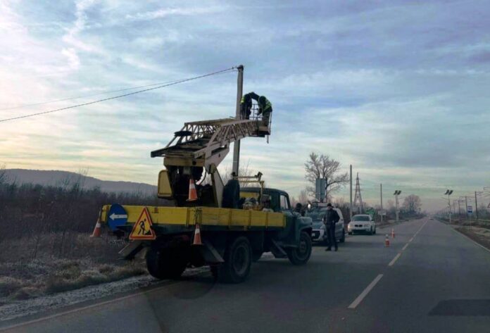 Фахівці монтують обладнання на межі трьох сіл: Невицького, Оріховиці та Оноківців. Саме тут водії часто нехтують обмеженнями швидкості, виїжджаючи на прямі ділянки траси.