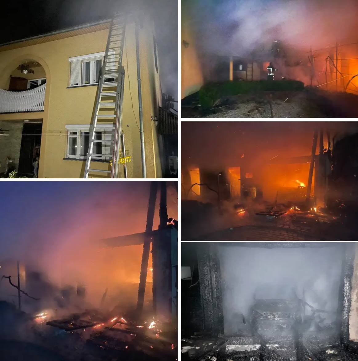 Унаслідок пожежі повністю знищено надвірну споруду, гараж і легковик. Постраждалих немає.