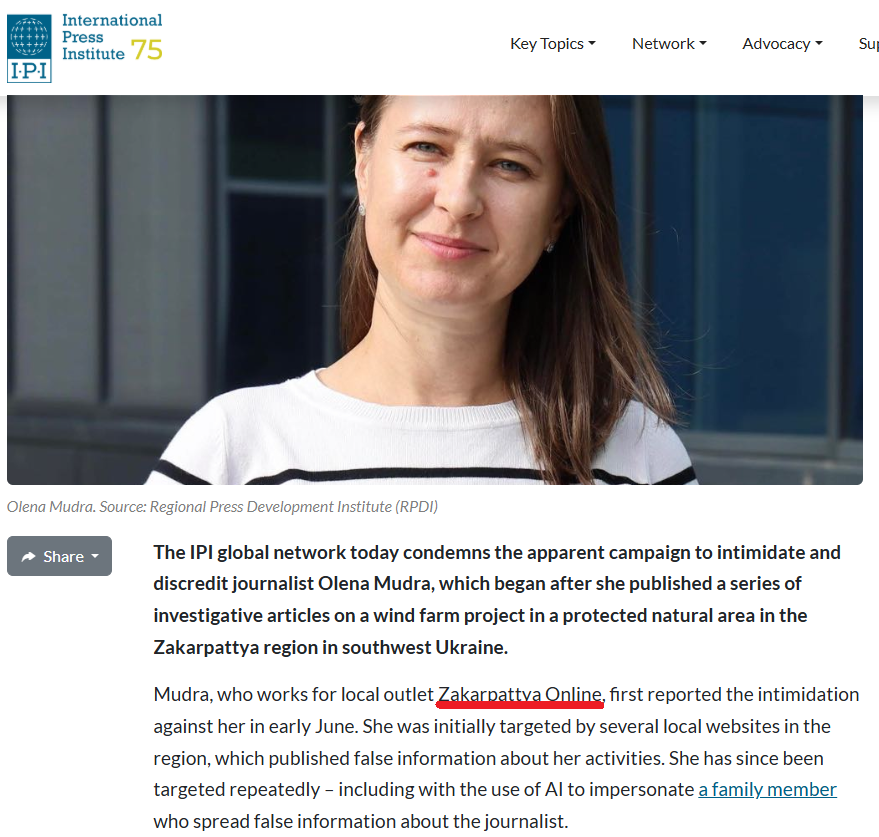 От підтвердження, що Олена Мудра позиціонує себе, як журналістка сайту Закарпаття онлайн.