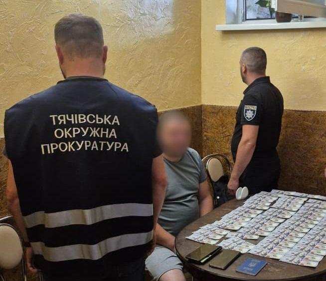 Зловмисника затримали під час отримання грошей. На місці події поліцейські вилучили два мобільні телефони та готівку.