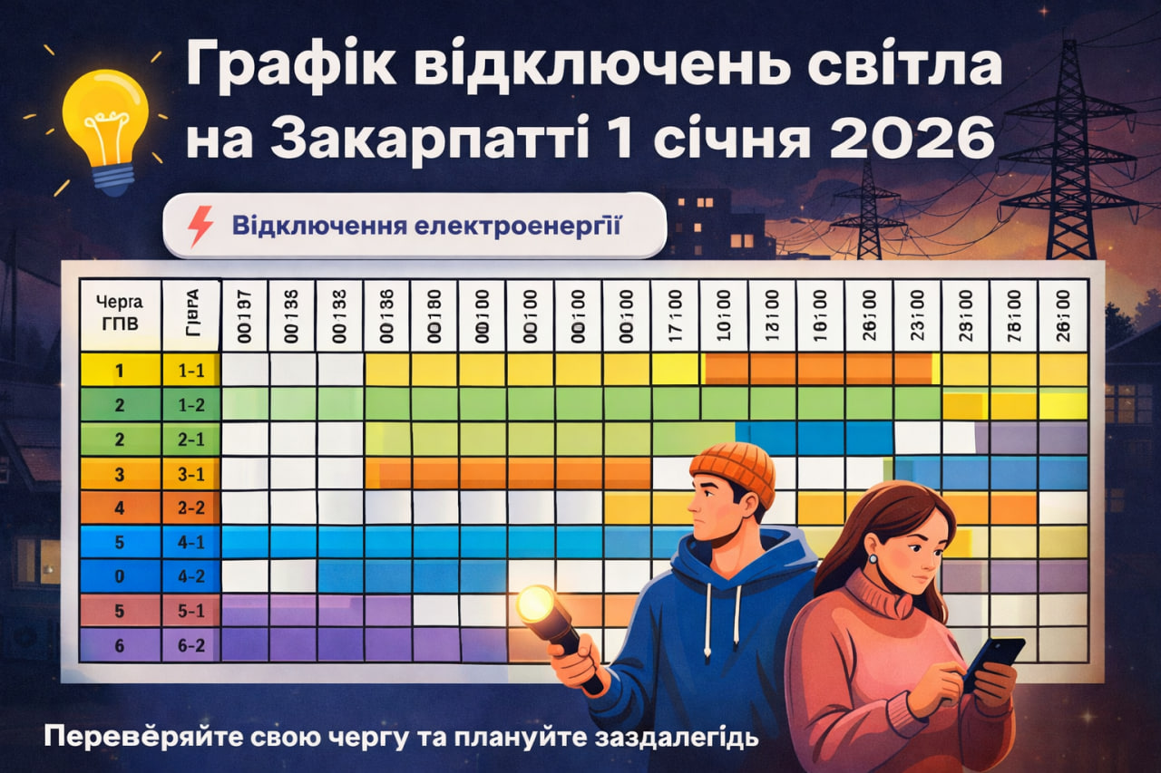 Новий рік на Закарпатті розпочинається з коректив у роботі енергосистеми. Через розпорядження НЕК «Укренерго» в області запроваджено оновлені графіки погодинних включень та відключень електроенергії (ГПВ) на сьогодні, 1 січня. Енергетики закликають мешканців краю завчасно планувати побутові справи, орієнтуючись на часові слоти своїх черг.