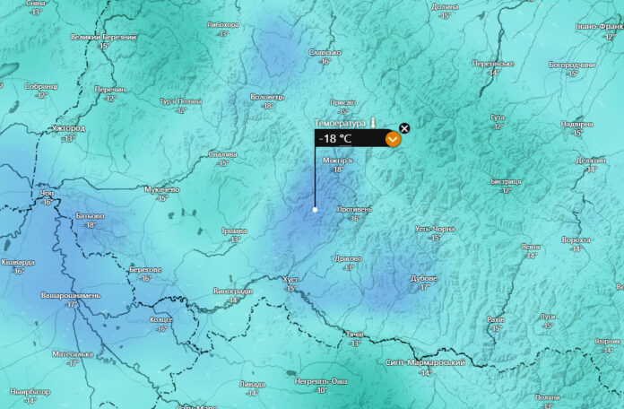 У низинних районах нічна температура коливатиметься в межах -12…-15°C, тоді як у високогір’ї та міжгірських улоговинах стовпчики термометрів можуть опуститися до позначки -20°C.