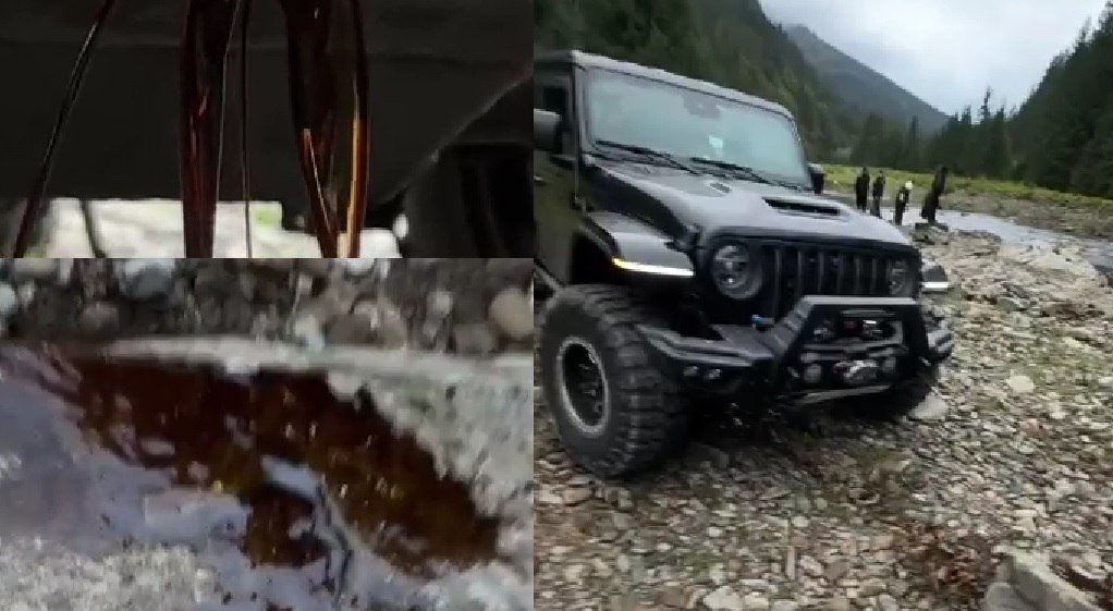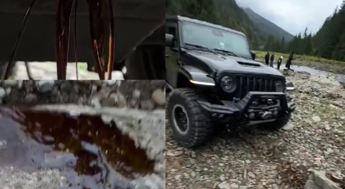 Під час моніторингу соціальних мереж правоохоронці виявили відеозапис, на якому видно, як один із позашляховиків отримує пошкодження, а мастило витікає та стікає на кам’янистий берег гірської водойми. Публікацію розмістив учасник заїзду джиперів.