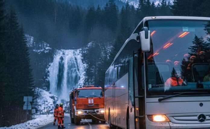 Напередодні ввечері поблизу високогірного села Пилипець рятувальники провели екстрену операцію з евакуації туристичного автобуса. Транспортний засіб із групою дітей опинився у сніговій пастці на узбіччі, повертаючись від популярної локації — водоспаду Шипіт.