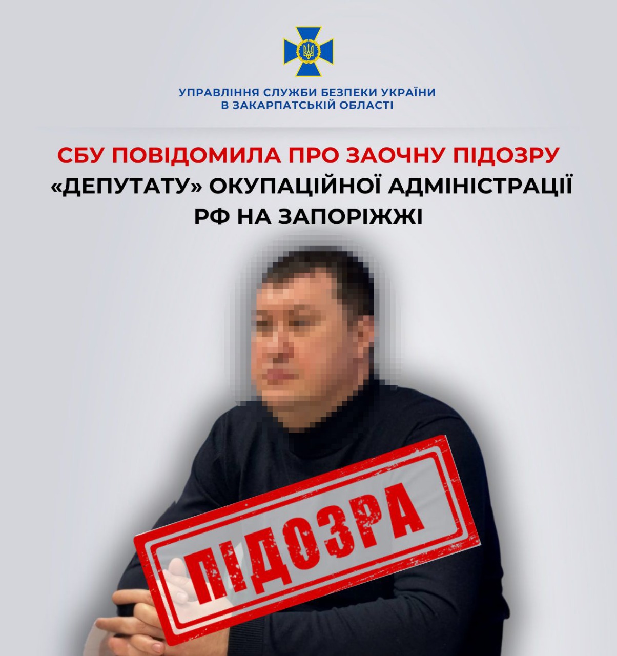 На підставі зібраних доказів та висновків експертиз слідчі СБУ в Закарпатській області повідомили фігуранту заочну підозру за ч. 5 ст. 111-1 (добровільне зайняття посади в незаконному органі влади, створеному на тимчасово окупованій території, у тому числі окупаційній адміністрації держави-агресора) та ч. 6 ст. 111-1 (здійснення інформаційної діяльності у співпраці з державою-агресором та його окупаційною адміністрацією) Кримінального кодексу України.