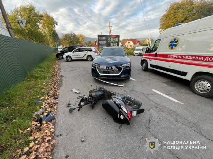 Вранці 3 жовтня у місті Тячів Закарпатської області сталася дорожньо-транспортна пригода (ДТП) за участю мопеда та легкового автомобіля, внаслідок якої травмувалися двоє неповнолітніх. На місце події негайно виїхала слідчо-оперативна група Тячівського районного відділу поліції для встановлення всіх обставин інциденту.
