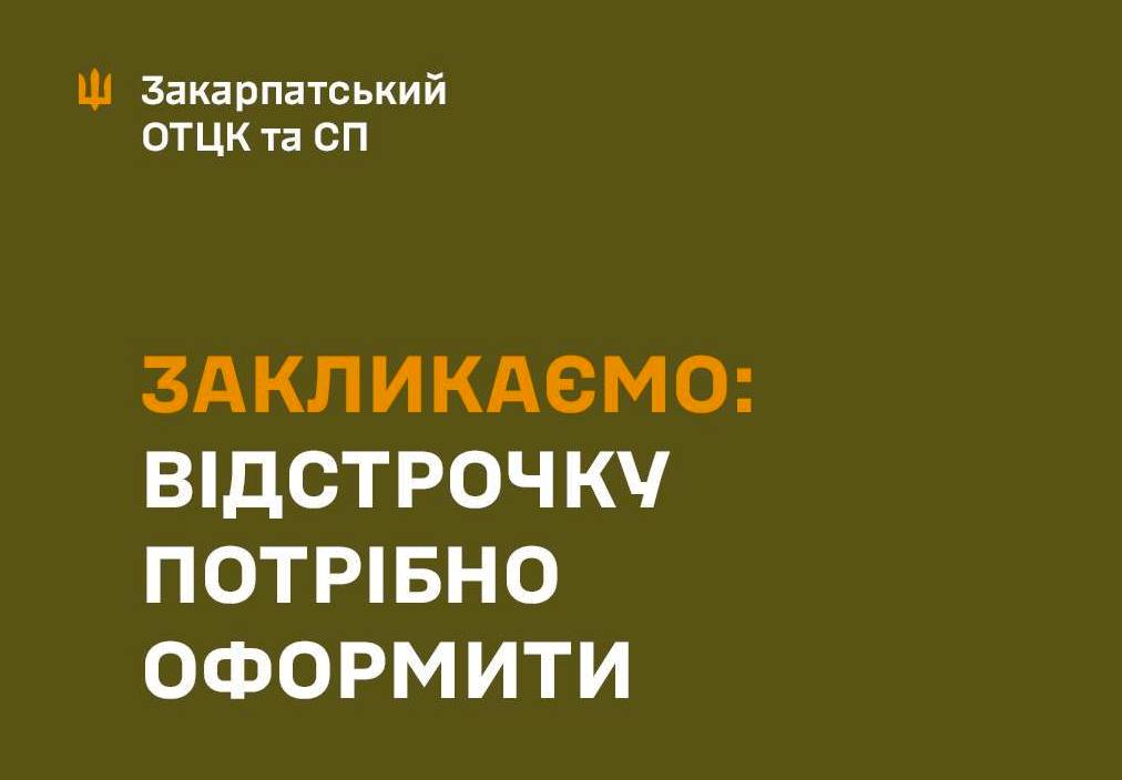 Відстрочка від мобілізації Закарпаття тепер оформлюється за значно спрощеною процедурою, яка виключає необхідність особистого візиту до територіальних центрів комплектування. Закарпатський обласний територіальний центр комплектування та соціальної підтримки (ОТЦК та СП) закликає громадян, які мають законні підстави для відстрочки, не зволікати та скористатися цифровими інструментами.