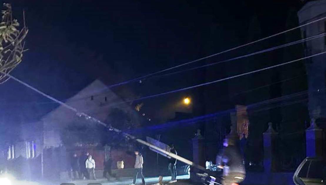 Аварія сталася у вечірній час доби. На опублікованій світлині видно повалений стовп, що лежить поперек дороги, та обриви ліній електропередач. Кілька людей зібралися на місці події, ймовірно, очевидці чи місцеві мешканці.