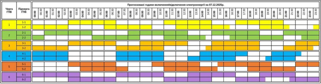 🕰️ Деталізований графік по чергах на 7 грудня