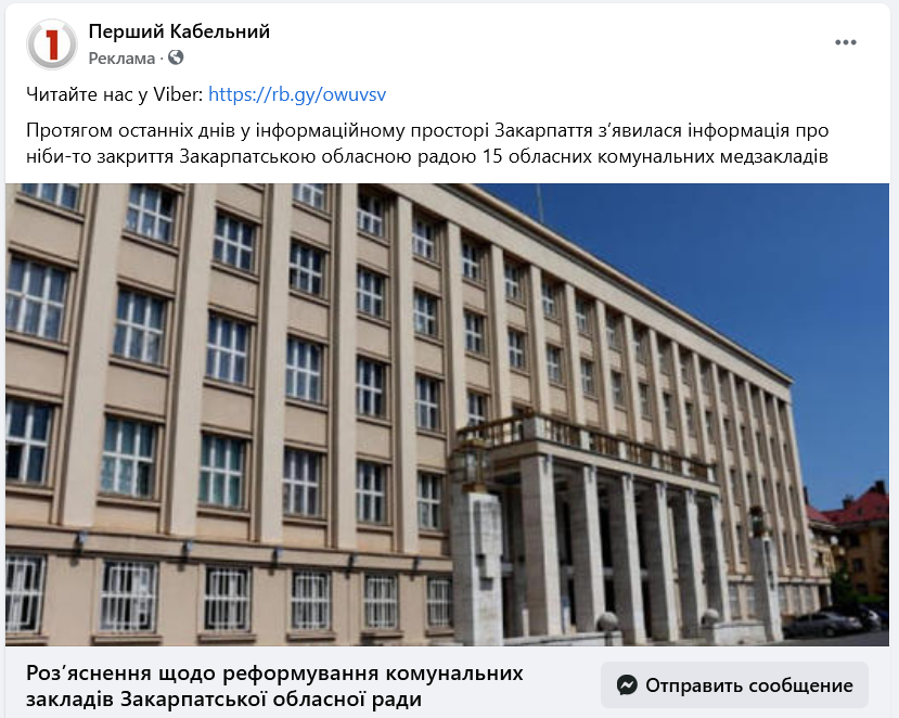 ❌ 15 обласних комунальних медзакладів Закарпаття закриють.